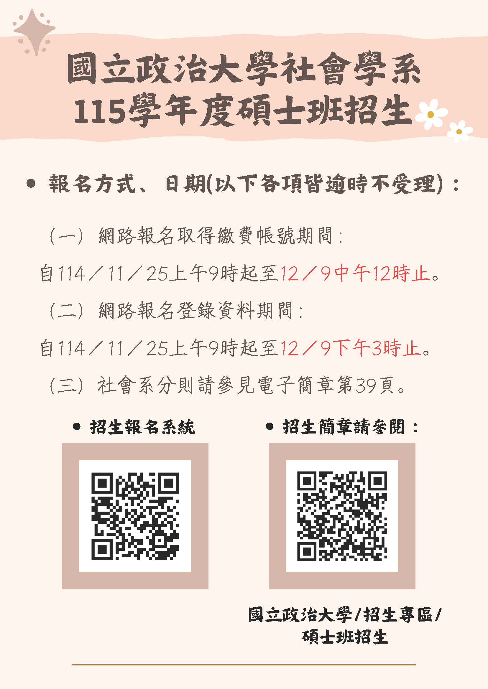 社會系115學年度碩士招生公告